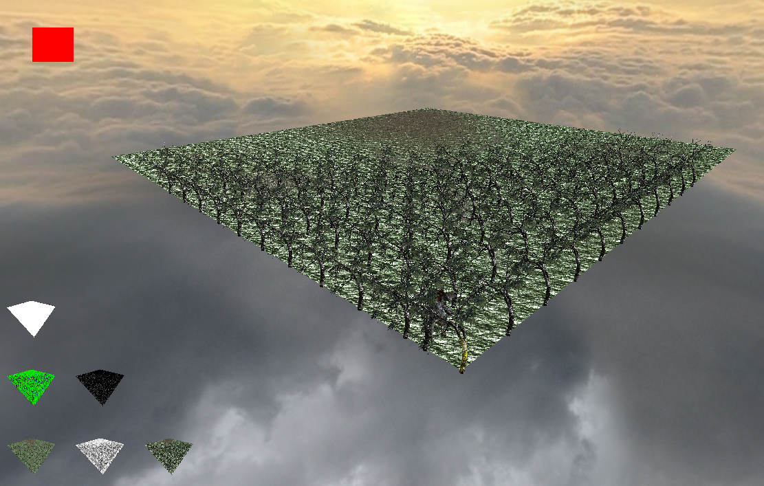 붉은 색 픽셀 부분에만 나무 오브젝트가 배치되게 작업하는 과정.
