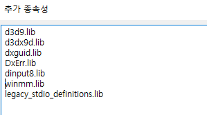 포함 디렉터리 : C:\Program Files (x86)\Microsoft DirectX SDK (June 2010)\Include